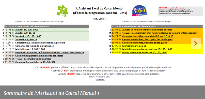 Un professeur d’école du département a conçu un outil pour générer des séries de calculs pour travailler le calcul mental avec ses élèves de CM1 et de CM2. Les deux fichiers sont proposés librement sur son blog à cette adresse : L’assistant pour le Calcul mental avec Excel
