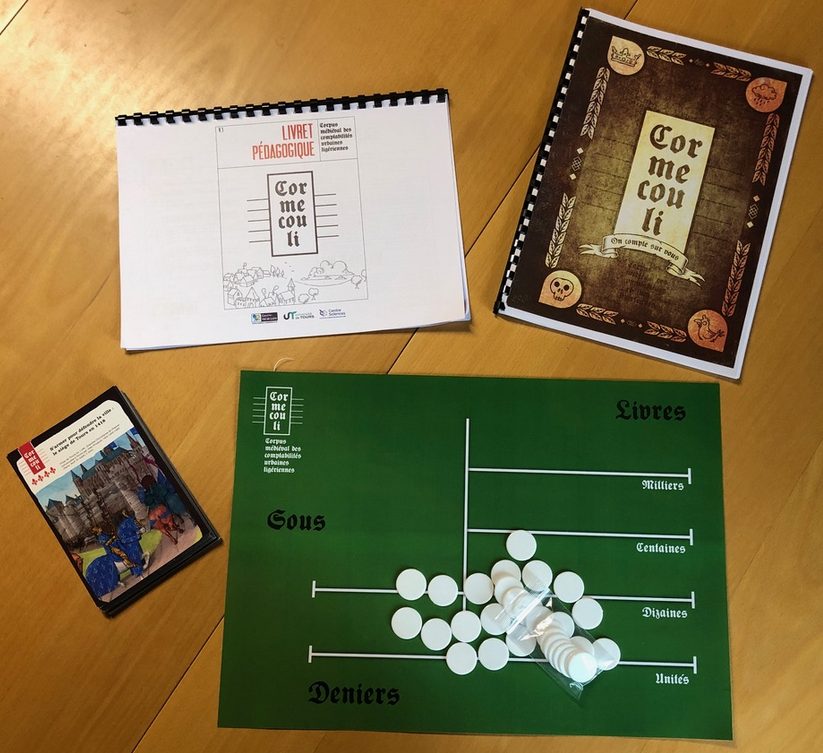 La mallette Cormécouli est issue du projet de création d’une base de données regroupant les comptabilités médiévales des villes d’Amboise, Orléans et Tours. Les IREM de Dijon, Limoges, Paris-Nord et Centre-Val de Loire se sont retrouvés à collaborer avec les historiens du projet pour construire des exercices de mathématiques puis un jeu à destination des élèves du cycle 3.
